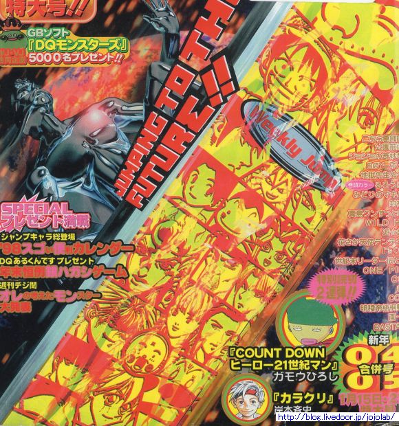 97年はキャラ集合表紙はありませんでした。ちなみにこの年にジョジョは連載500回を突破します。